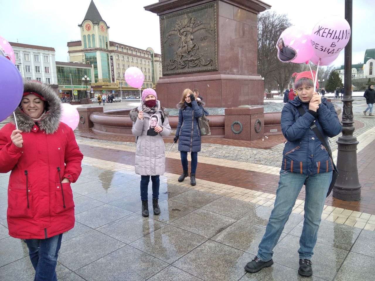 Несколько активисток, борющихся за права женщин, собралось на площади Победы в Калининграде днем в понедельник, 8 марта, сообщает корреспондент «Нового Калининграда». Участницы акции держат в руках розовые воздушные шары, на которых написано «Женщину в президенты» и наклеены фотографии женщин. Рядом с ними находятся сотрудники полиции, которые не препятствуют проведению акции.
