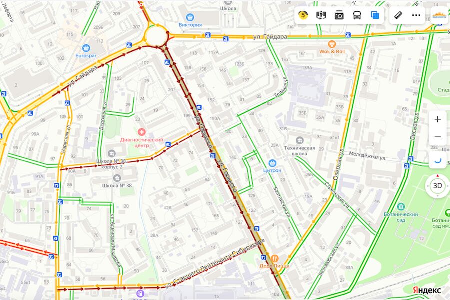 В районе пересечения с ул. Сибирякова столкнулись легковые «Мицубиси» и «Хёндай». Участники аварии перегородили полторы полосы, движение сильно затруднено. Горького стоит от кольца на пересечении с ул. Гайдара, образовалась пробка на ул. Сибирякова и на ул. Зеленой.