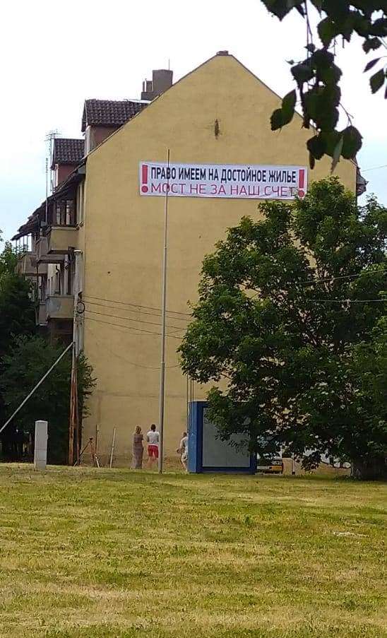 На немецком доме по улице Галицкого, 50-52, который попадает под снос из-за строительства дублёра двухъярусного моста, повесили баннер с надписью «Право имеем на достойное жильё. Мост не за наш счёт». Об этом «Новому Калининграду» сообщили очевидцы. По их словам, баннер появился на фасаде здания со стороны двухъярусного моста вечером в четверг, 24 июня.