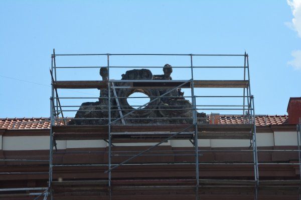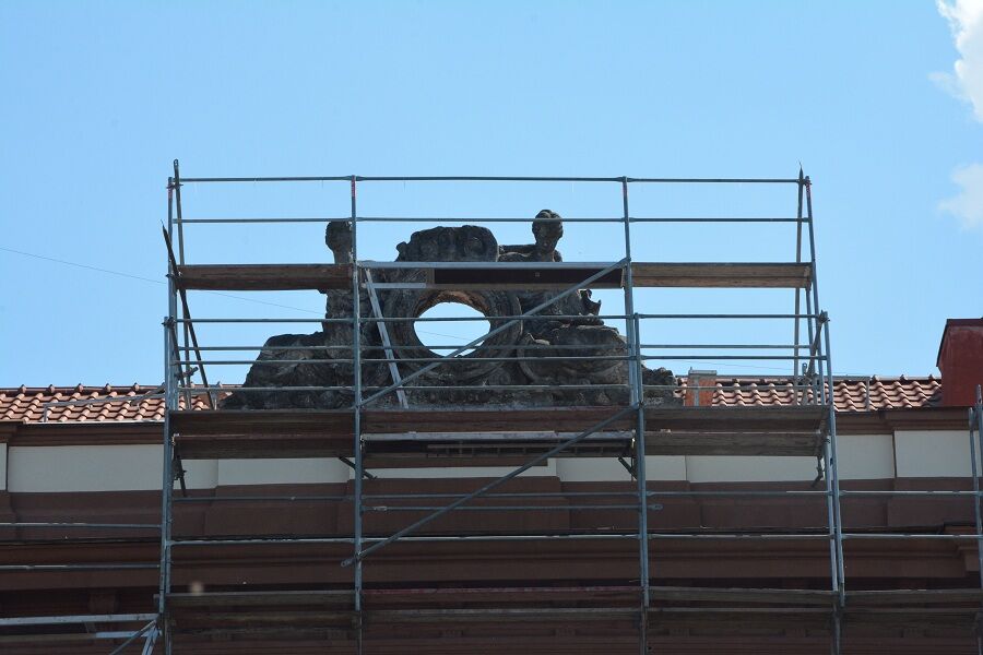 «Проектной документацией предусматривалось восстановление архитектурного элемента, однако в ходе ремонта выяснилось отсутствие возможности проведения данных работ. На сегодняшний день ведется согласование со службой памятников по дальнейшему ремонту данной скульптуры согласно историческим эскизам, что является долгим трудоемким процессом», — пояснили в фонде.