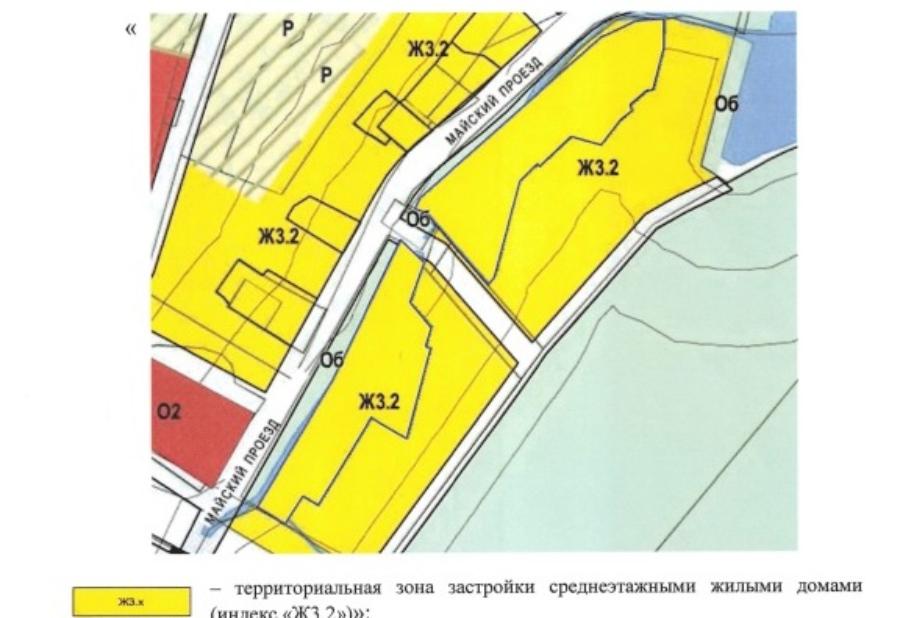 Согласно документу, в зону застройки переводятся семь участков, которые расположены между многоэтажными домами по ул. Майский проезд. Береговая полоса, прилегающая к водному объекту, исключается из ПЗЗ.