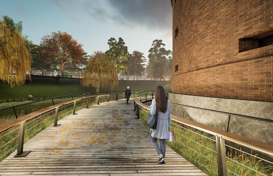 В проекте должны быть предусмотрены формирование доступной территории общего пользования, создание прогулочного маршрута над водой у башни Врангеля, обустройство освещения, видеонаблюдения и тематических площадок активности. Кроме того, должно быть разработано предложение по безопасному переходу улиц Пролетарской и Партизанской.