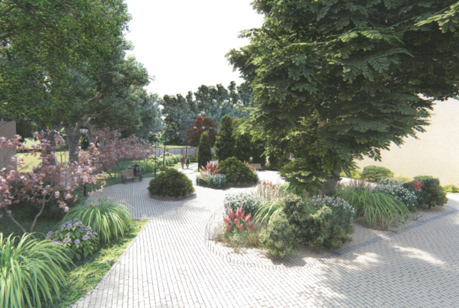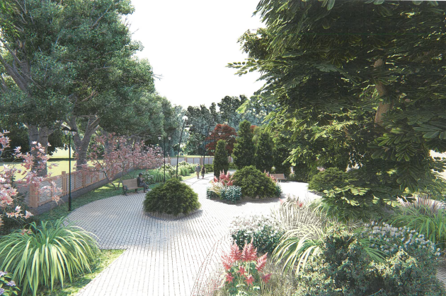 Согласно документации, сквер должен появиться возле дома №18. Пешеходную зону планируется вымостить в основном желтой тротуарной плиткой (248 кв. м). В рамках озеленения намерены посеять газон на площади 380 кв. м., а также высадить шесть кустов можжевельника и пять девяти-десятилетних саженцев красного клена.