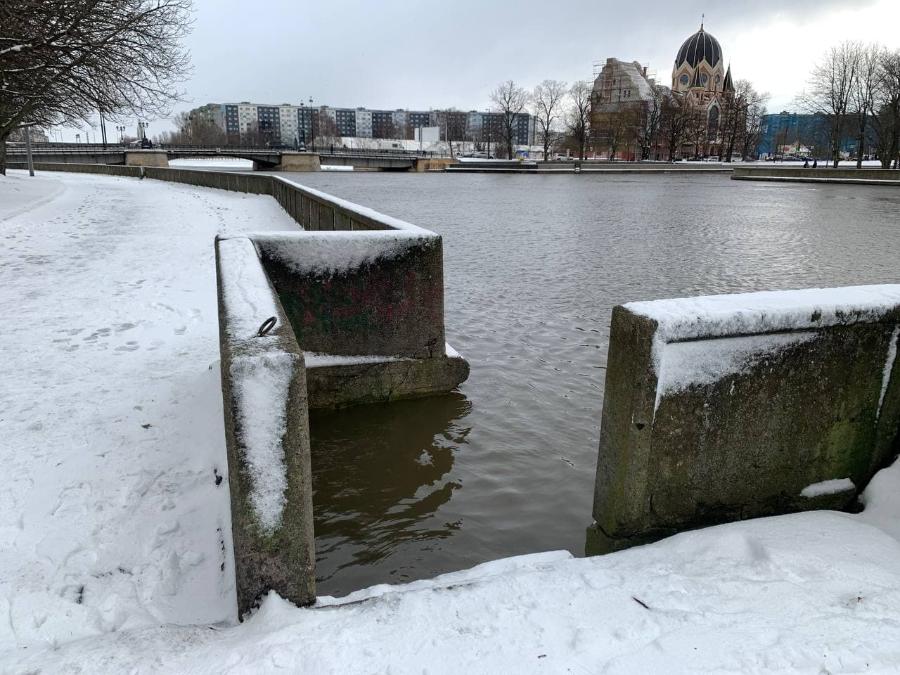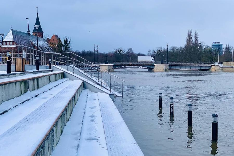 В Калининграде из-за сильного северо-западного ветра уровень воды в реке Преголя поднялся почти на метр. Это следует из данных, предоставленных в администрации города в пятницу, 21 января.