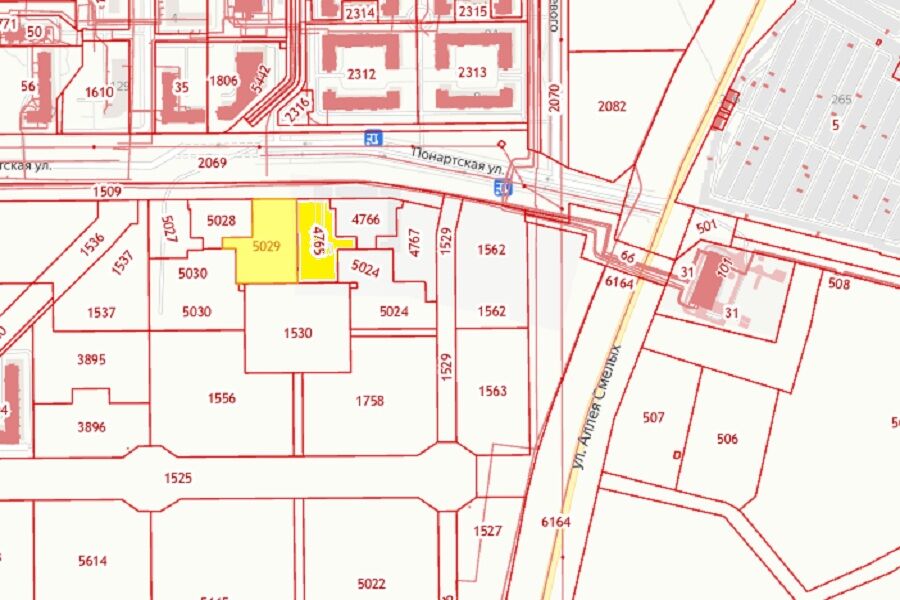 Речь об участках с кадастровыми номерами 39:15:142025:5029 (площадь 5539 кв. метров, вид разрешенного использования — «под строительство многоквартирных домов с объектами административного, торгового и культурно-бытового назначения») и 39:15:142025:4765 (площадь 4185 кв. метров, вид разрешенного использования — «многоэтажная жилая застройка (высотная застройка)»). Они относятся к ул. Громовой, хотя расположены рядом с Понартской.
