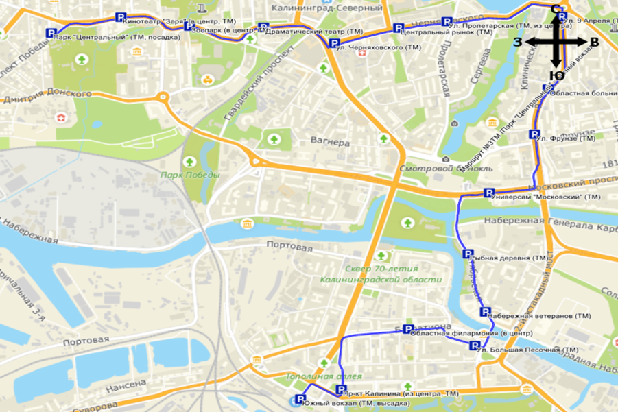 Трамваи маршрута № 3 планируется направить с Южного вокзала по Ленинскому проспекту — ул. Багратиона — ул. Октябрьской — Московскому проспекту — ул. 9 Апреля — пл. Марш. Василевского — ул. Черняховского — пл. Победы — проспекту Мира — до Центрального парка.
