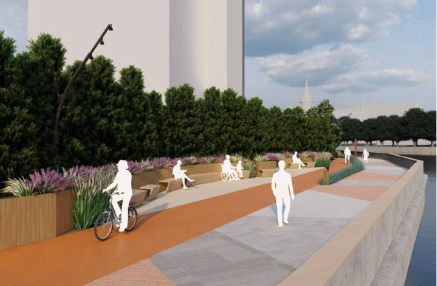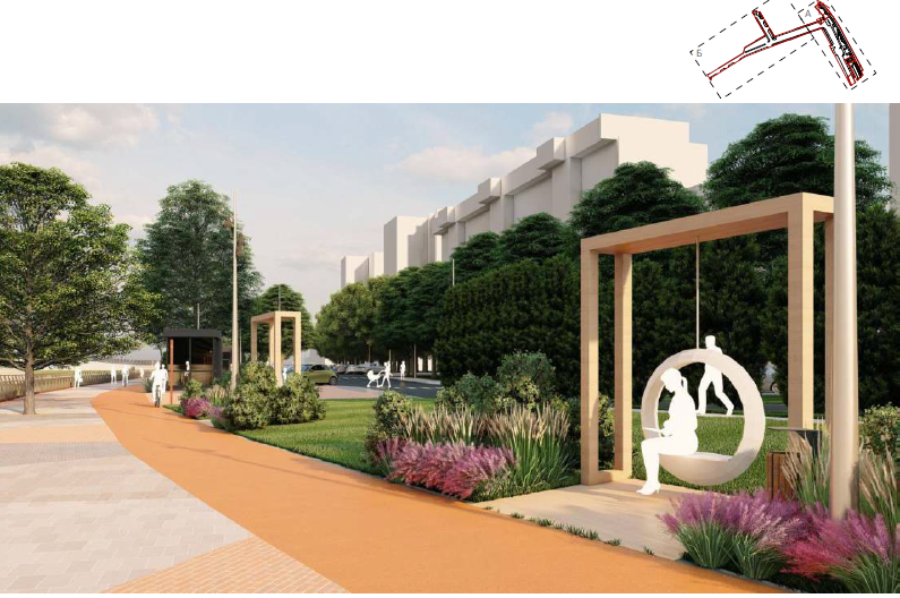 Во всех случаях проектировщик должен будет отталкиваться от концепции, предусматривающей создание новых прогулочных пространств с зонами отдыха, вело и пешеходными дорожками. Предусматриваются террасы, скамейки, урны, качели и т. д. Также планируется провести озеленение.