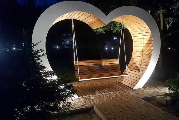 В Янтарном на ул. Советской установили качели в виде сердца с вечерней подсветкой. Об этом сообщается в официальном паблике муниципалитета в «ВКонтакте».
