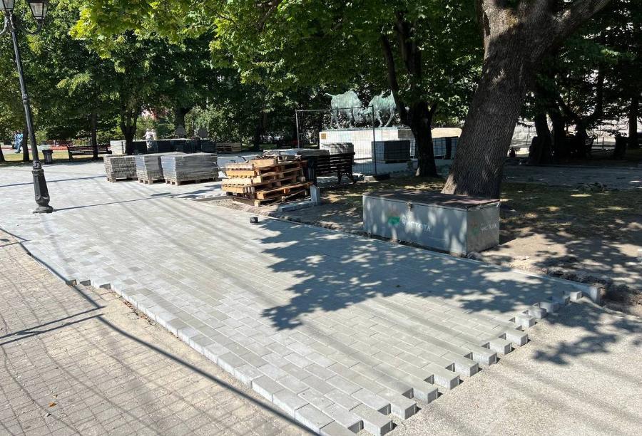 В настоящее рабочие ведут земляные работы, укладывают на месте пешеходных дорожек новую тротуарную плитку, устанавливают бортовые камни. Согласно документации, опубликованной на сайте госзакупок, основной объем работ касается именно ремонта тротуаров.