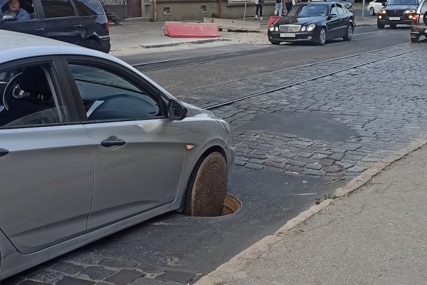 Накануне днем в этот люк угодил колесом легковой автомобиль. «Хёндай» наехал на крышку люка, которая в этот момент открылась и встала вертикально, «прильнув» к колесу авто. В результате колесо плотно застряло в проёме люка.
