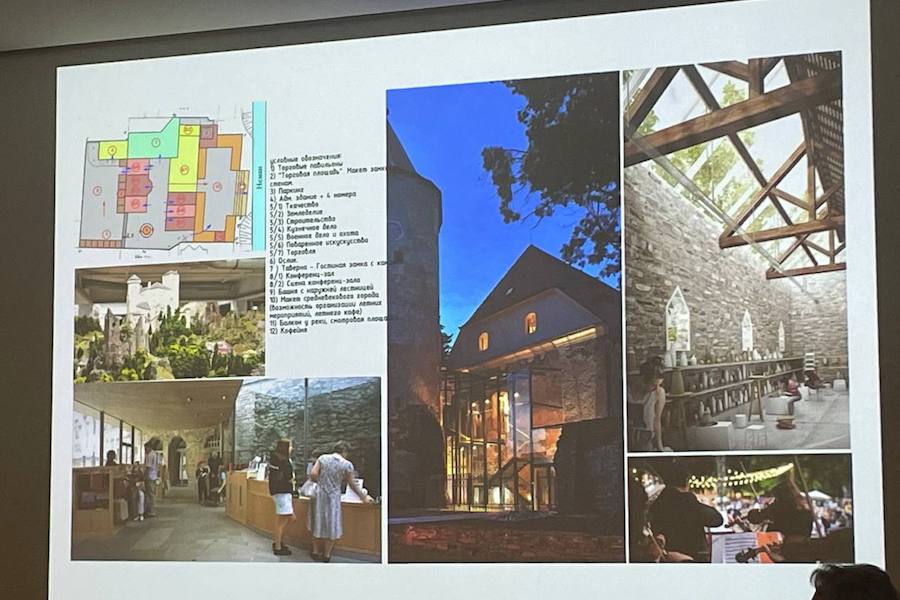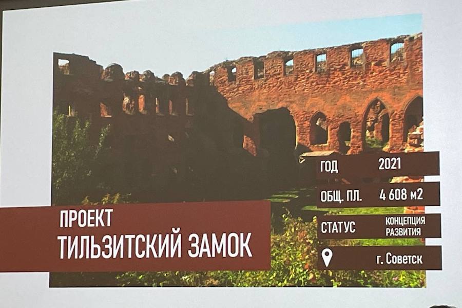 Восстанавливать замок не планируется, отметила Тесленко, так как это «совершенно безумные деньги». «Идея была в том, чтобы добавить конструкций современных, чтобы люди видели: вот старое, вот новое. Там могут происходить какие-то музейные истории, потому что Тильзитский замок — безумно интересное место по смыслу, по локации», — сказала глава ассоциации. Концепция предполагает создание нескольких тематических ремесленных зон, таверны, башни с мансардой, кофейни, конференц-зала и мини-гостиницы.