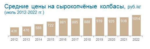 Килограмм вареной колбасы этим летом калининградцам обходится на 66,42 рублей дороже, чем в прошлом — 478,38 рублей. Сосиски и сардельки подорожали примерно на такую же сумму — с 333,99 руб. за кг до 399,79 руб (+65,77 руб). Колбаса полукопченая и варено-копченая в прошлом году стоили примерно 543,76 рублей за кг, а в 2020 — уже на 85,5 руб. дороже (629,27 руб. за килограмм). Колбаса сырокопченая к июлю 2022 года прибавила в цене 116 рублей и сейчас килограмм этого продукта калининградцы могу купить в среднем за 1053,64 руб.