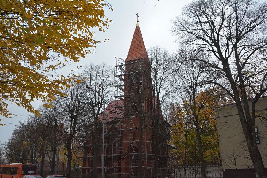 В Калининграде начались работы по сохранению кирхи Святого Адальберта на проспекте Победы, 41. Как передает корреспондент «Нового Калининграда», вокруг объекта культурного наследия установили строительные леса.