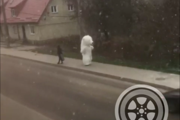В микрорайоне им. А. Космодемьянского местные жители сняли на видео человека в костюме белого медведя. Запись опубликовали в сообществе калининградских автомобилистов «ВКонтакте» с пометкой, что сделана она в пятницу, 18 ноября. «Медведь» станцевал проезжавшей мимо машине, а потом сопровождавшая его женщина благополучно перевела «зверя» через дорогу.