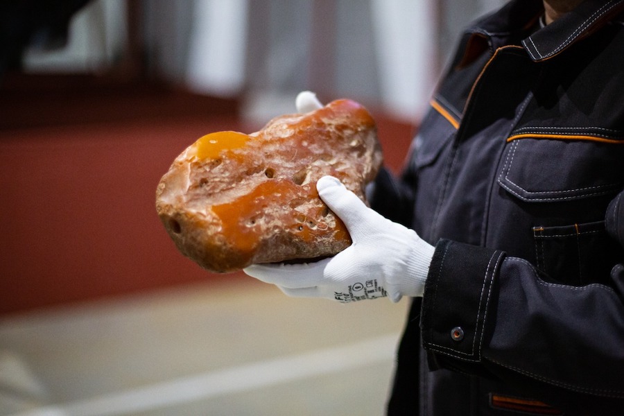 «Извлеченный из недр Приморского карьера „Студенческий“ — камень высокого качества. Он представляет собой монолитный кусок произвольной формы и плотной структуры. Цвет образца матовый, переходящий от светло-желтого до насыщенного медового оттенка», — отмечает специалист-геммолог комбината Анна Дугина.