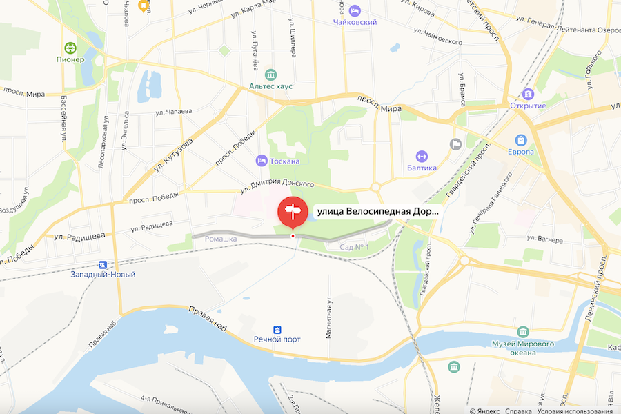 «Сейчас это просто направление, откровенно скажем, её соединение и выход на Радищева и возможное, но это уже ученые нам скажут, одностороннее движение по Велосипедной в центр. Когда вы едете из Балтийска, вы выходите на Радищева, и если у нас появится Велосипедная дорога, можно будет ехать дальше в центр. И наоборот Донского сделать односторонней на выезд из города, движение в сторону Балтийска. Но это пока мысль, её еще надо доказать расчетами», — говорил в 2021 году губернатор Антон Алиханов.
