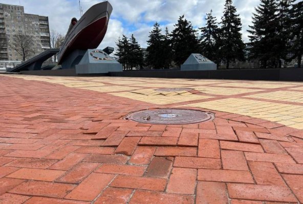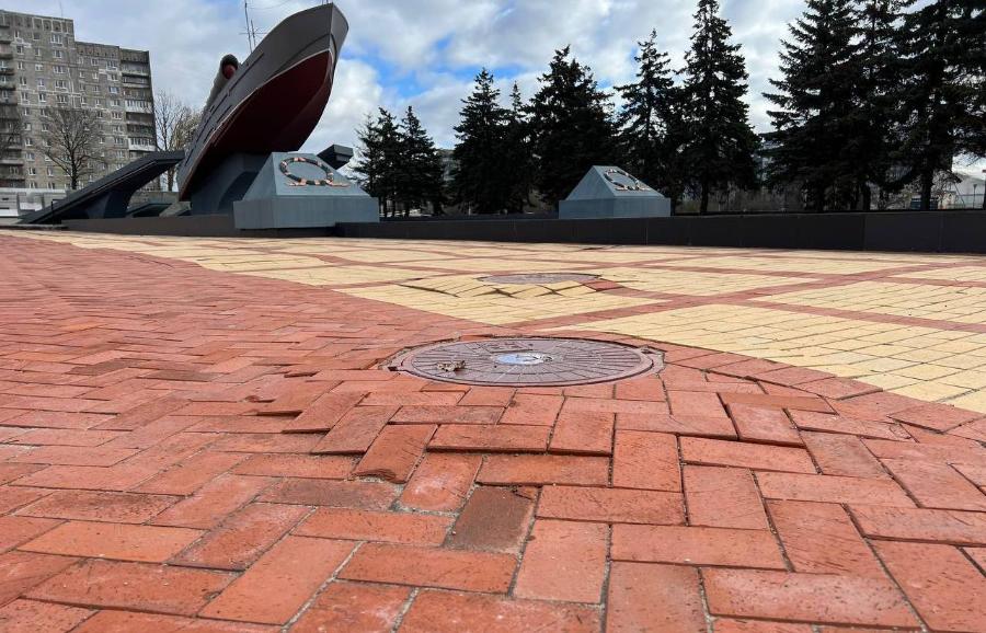 В Калининграде вокруг отремонтированного памятника «Морякам-балтийцам» просела и провалилась тротуарная плитка, сообщили в воскресенье, 26 февраля, местные жители.