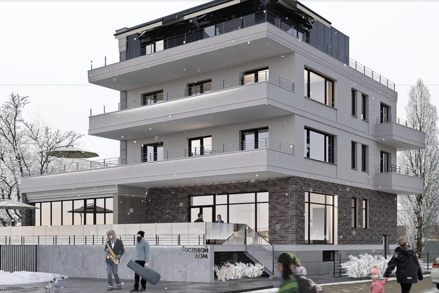 Будущая гостиница предполагает четыре надземных этажа и один подземный для технических помещений. На первом этаже разместится фойе, рецепция, ресторан, а также зона спа и бассейн. на втором этаже предусмотрена терраса для постояльцев. Всего в здании планируют обустроить семь номеров. «В архитектуре мы старались использовать приёмы, свойственные курортной зоне, — балконы, много остекления, террасы с видом на море, — пояснили авторы проекта. — Уровень первого этажа мы приподняли на 1,5 метра, чтобы было видно море».