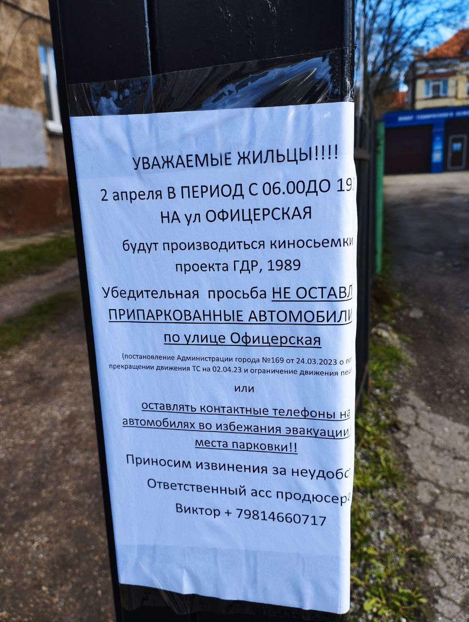 «На повороте с проспекта Мира поставили знак „кирпич“, дежурит машина ГИБДД», — уточнил собеседник. В начале марта в Калининграде уже перекрывали улицы из-за съемочного процесса.