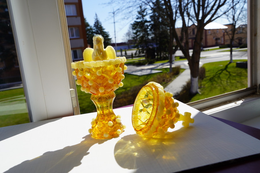 Янтарный комбинат выпустил коллекционную серию из 35 пасхальных яиц. Как сообщает во вторник, 11 апреля, пресс-служба предприятия, миниатюрные сюжеты на тему христианского праздника полностью выполнены из прессованного янтаря, и ни один из них не повторяется.