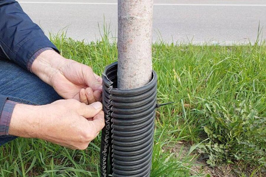 «Манжеты оберегают неокрепшие стволы при окосе городских территорий, — поясняет пресс-служба. — И дальше будем продолжать эту работу».