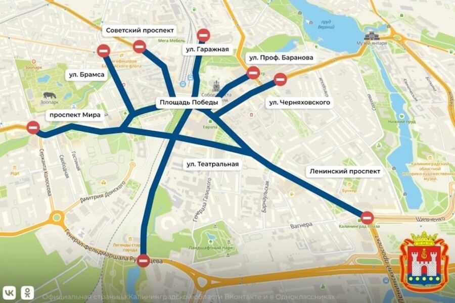С 7:00 до 13:00 будет ограничено движение всех видов транспорта по площади Победы, Гвардейскому проспекту, частично — по Советскому и Ленинскому проспектам.