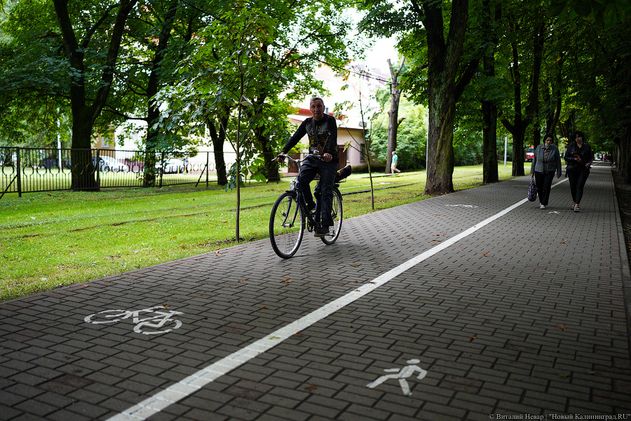 В Калининграде начинают наносить велопешеходную разметку на улицах, где это позволяет сделать ширина тротуаров, сообщает администрация Калининграда в соцсетях.