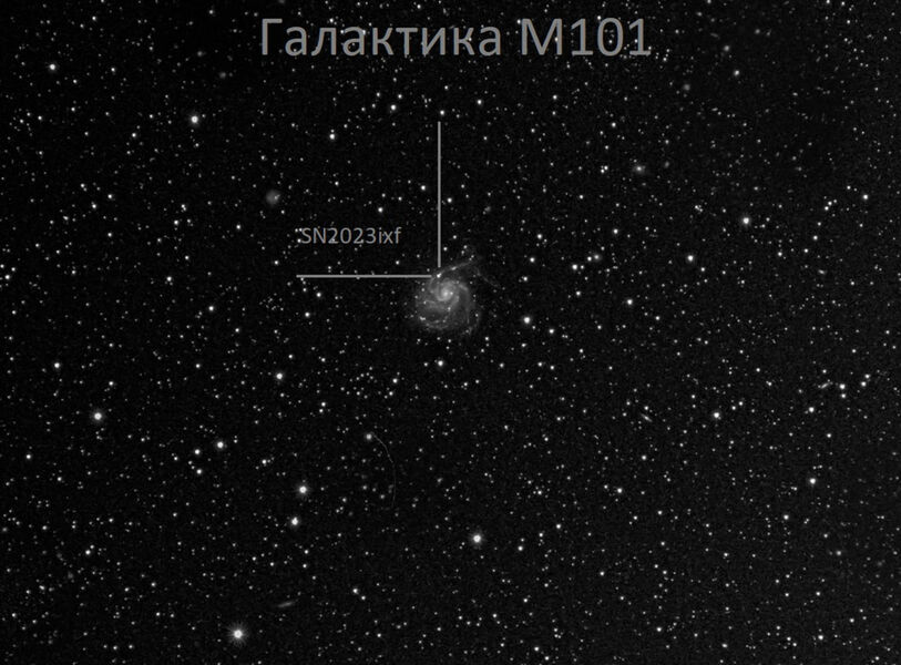 Звезда, которой был присвоен индекс SN 2023ixf, была обнаружена в галактике М101 (также известной под именем «Вертушка» из-за ярко выраженной спиралевидной формы) 19 мая 2023 года. А в ночь на 23 мая астрономам БФУ удалось запечатлеть ее с помощью специального оборудования.