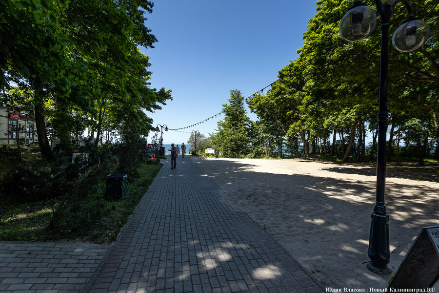 В парк Беккера в Янтарном вернутся торговые точки, демонтированные по решению суда (сейчас площадка справа от центрального спуска к пляжу по-прежнему пустует). Об этом журналистам во вторник, 30 мая, рассказал глава администрации курортного поселка Артур Крупин.