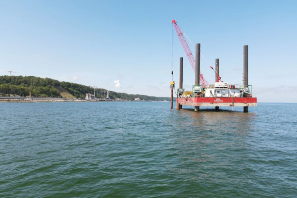 «Продолжается строительство 1-го подэтапа пляжеудерживающих сооружений в Светлогорске. В море начала работать платформа, с которой подрядчик Балтберегозащиты начал создавать временный причальный ряд для швартовки, разгрузки и погрузки судов. С них будут строить волноломы», — объяснили появление нового объекта в пресс-службе.