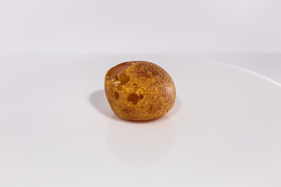 «На сегодняшний день в коллекции комбината — более 100 капель общим весом более 3 кг. Из них капли в 218 и 124 грамма — янтарные тяжеловесы — представлены в музейном пространстве „Янтарная галерея“ в Москве. Найденный экземпляр имеет околосферическую форму и практически цельную корочку, что для такого объемного камня редкость. Капля обладает необычным светло-желтым полуматовым оттенком янтаря, переходящим в темно-медовый, практически прозрачный. Обычно такие большие образования более матовые», — комментирует находку специалист-геммолог Калининградского янтарного комбината Анна Дугина.