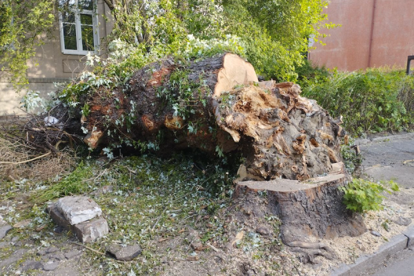 В Калининграде во время ремонта тротуара на улице Чапаева был спилен клен сахаристый диаметром 135 см. Кроме того, под снос попал более молодой клен сахаристый с диаметром ствола 85 см. Оба дерева в перечетной ведомости зеленых насаждений от 15 мая этого года были названы ослабленными. Кроме того, снос упрощал работы подрядчику, которому предстояло отремонтировать тротуары на улице от проспекта Мира до улицы Огарева.