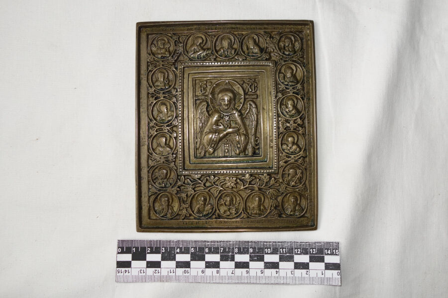 «Экспертиза показала, что это — бывшая в употреблении меднолитая икона „Спас Благое Молчание с избранными святыми“, созданная в России в первой половине XX века, то есть более 50 лет назад. Согласно действующему законодательству, предмет является культурной ценностью и для его перемещения необходимо иметь разрешительный документ, выдаваемый Министерством культуры Российской Федерации», — пояснили в пресс-службе.