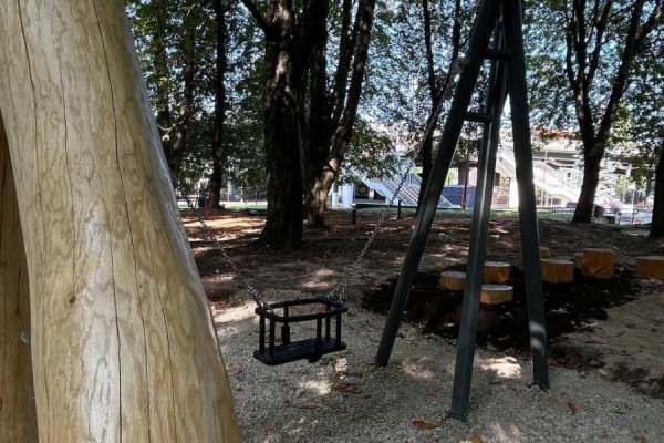 Площадка появилась в парке скульптур. «Здесь нет спрессованного или окрашенного дерева. Стволы дуба и лиственницы, которые служат для поддержки конструкций, обработаны минимально. В перевернутом виде они напоминают сказочных существ, под присмотром которых можно покататься на удобных качелях с „паутиной“, пройти по канатному мосту между „башнями“, забраться на бревенчатую „пирамиду“, поиграть со „зверьками“», — пояснили в министерстве.