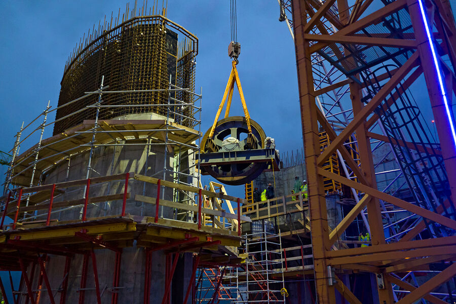 Специалисты компании «Бамтоннельстрой-мост» смонтировали и установили первый шкив механизма и установили его в проектное положение. Диаметр конструкции — более четырех метров, вес — 29,5 тонны. Шкив будет задействован в подъеме центрального пролета моста.