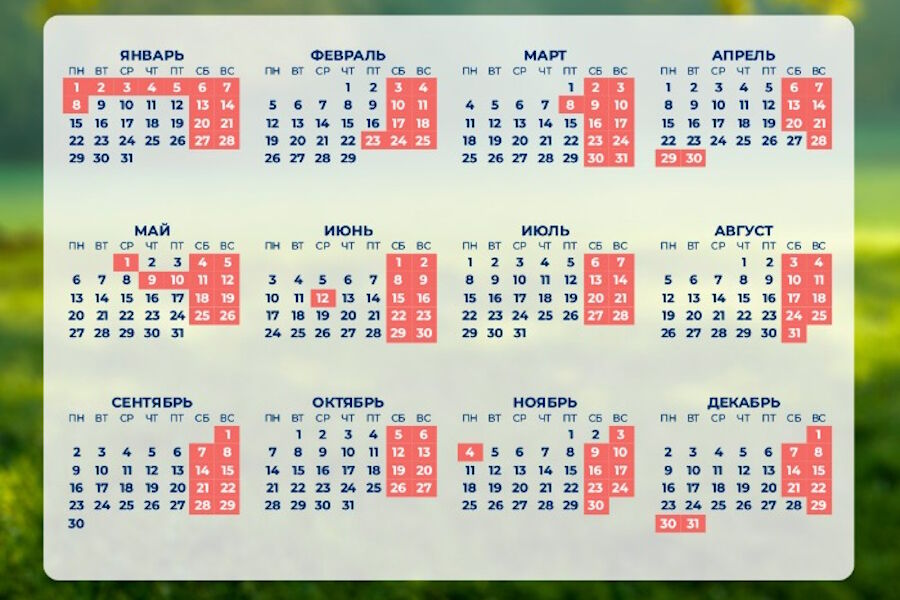 Согласно проекту постановления, в 2024 году будут следующие праздничные дни: