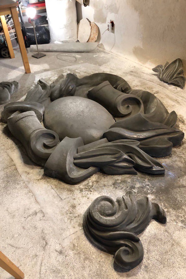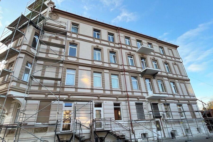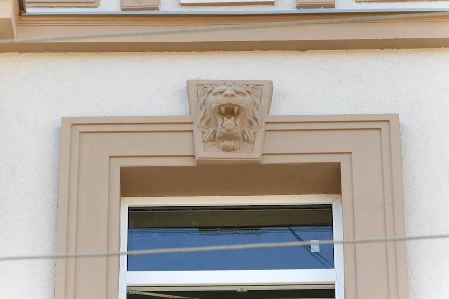 «Подрядчику удалось восстановить объект, в том числе фронтон, который украсит барельеф и шпиль. Убрали провода, восстановили стены, кровлю, балконы, привели состояние конструктивов к нормативному. Спустя 80 лет на дом вернулись гербовые медальоны и горельефы — львиные головы. Изготавливаются балконные ограждения и двери», — сообщается о деталях ремонта.