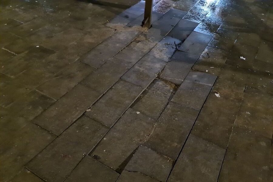 «Будет ли смена подрядчика, который совершает нарушения чуть ли не каждый день? — поинтересовался житель у представителей администрации. — Это плитка на Красной/Вернадского, уложенная пару месяцев назад».