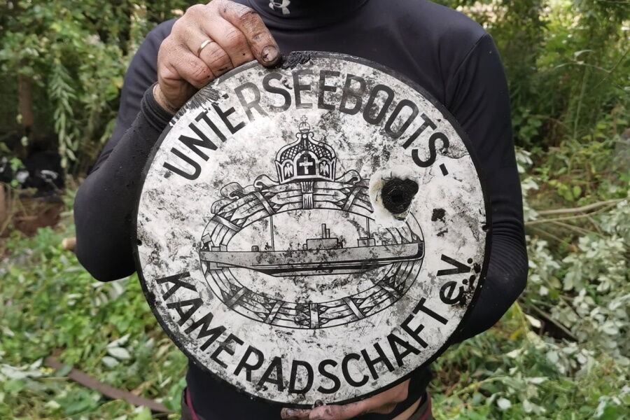 Подписчики «Форума копателей Калининграда» выбрали голосованием находку этого года. Победителями стали сразу два артефакта, найденные одним человеком на одной из заброшенных городских свалок: круглая эмалированная табличка Ассоциации немецких подводников (Unterseebootskameradschaft), основанной в 1925 году ветеранами Первой мировой войны, и фарфоровая бутылка в виде солдата в противогазе с надписью на немецком «Осторожно, папа устраивает газовую атаку».