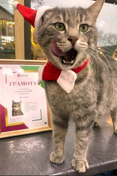 Сергей «устроился» в магазин больше двух лет назад после того, как его бывшие хозяева оставили кота на улице после переезда. Всё это время он поднимал настроение покупателям в обмен на ласку и еду, рассказали в магазине. В 2022 году компания удостоила Сергея звания «сотрудник года».