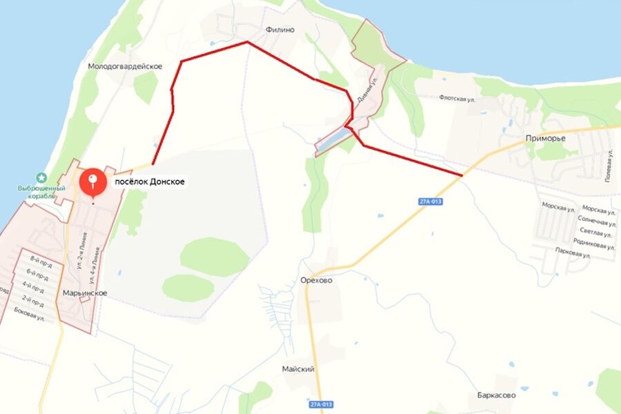 «Участок дороги от посёлка Приморье до посёлка Донское протяжённостью 5 км находится в ужасном состоянии. Часть дороги вымощена плитами ещё в советское время и в таком виде сохраняется до сих пор. Ширина дорожного полотна не соответствует требованиям безопасности — когда по дороге едет рейсовый автобус, он вынужден правой парой колёс съезжать на обочину, чтобы разминуться со встречными автомобилями», — написано в петиции.
