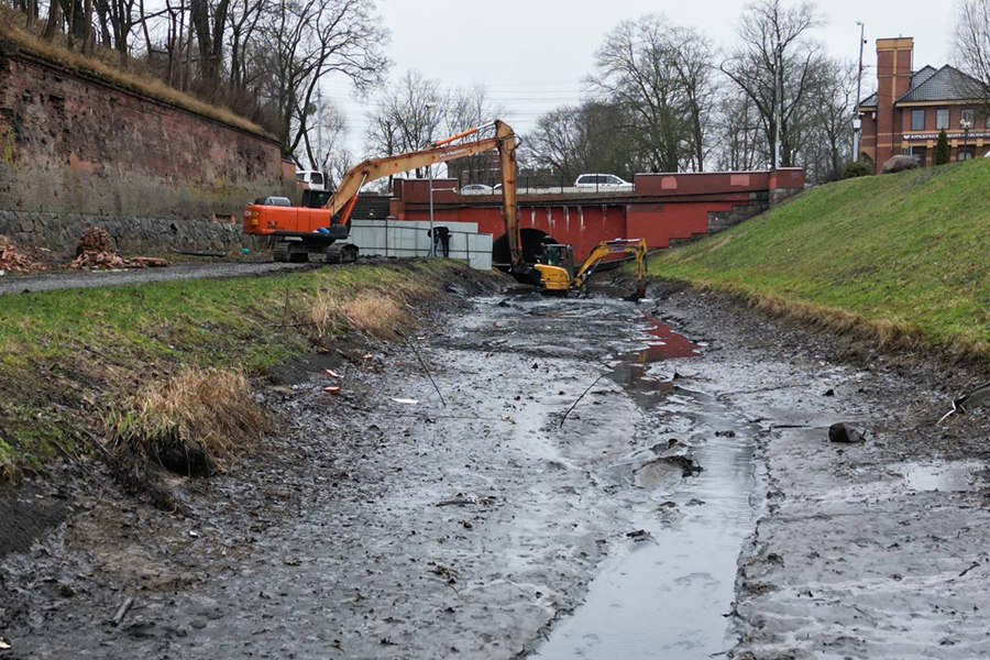 Расчищать ручей начали в декабре 2023 года. Тогда работы вели на участке от водоската в районе дома № 9 на Литовском Валу до улицы Невского. Уровень воды был временно понижен для изъятия донных отложений.