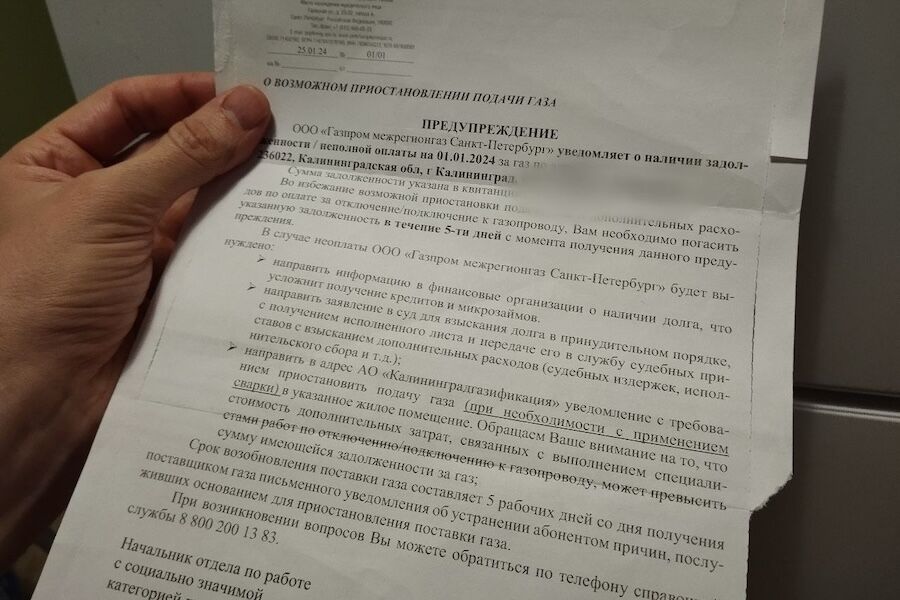 «В случае, если в марте текущего года Вам поступило письмо от поставщика природного газа <...> об отсутствии информации о заключенном с АО „Калининградгазификация“ договоре на техническое обслуживание внутриквартирного (внутридомового) газового оборудования и при этом у Вас имеется на руках такой фактически подписанный и возвращенный в адрес АО „Калининградгазификация“ договор, в том числе если Вы заключили указанный договор посредством присоединения к публичной оферте на сайте www.gaz39.ru, просим Вас не предпринимать каких-либо действий», — говорится в сообщении.