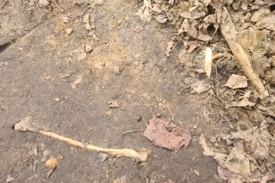 «Подрядчик якобы не заметил кости, — продолжил Хисамов, — хотя вряд ли так все и было на самом деле. Вместе с полицейскими мы нашли плечевую кость, два локтя, ребра, несколько позвонков, ключицу и лопатку. Кроме того, на том же месте я нашел металлическую пряжку. Судя по всему, она от красноармейских галифе. По костям можно сказать, что это мужчина 25-30 лет».