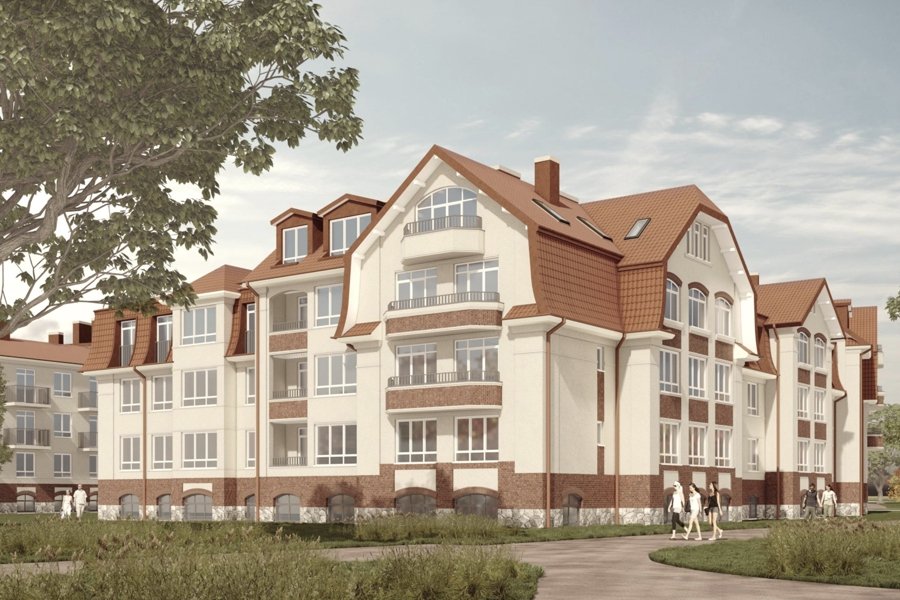 «Мы находимся в охранной зоне крепости Пиллау. Соответственно, у нас есть определенные ограничения <...>, — отметил архитектор Федор Лученко, представлявший проект. — Был проведен анализ исторической застройки и принято решение работать в псевдоисторическом ключе, опираясь на историческую застройку. Она была примерно такой же этажности, [решили] взять от нее какие-то архитектурные приемы, скатные крыши, высокие кровли».