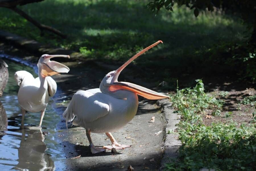В посте отметили, что сейчас в зоопарке живёт два кудрявых и розовых пеликана. В их рацион входит путассу, салака килька и речная рыба. Птиц кормят два раза в день по полпорции.