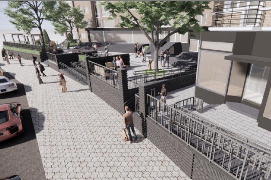«Местность возле зданий имеет ярко выраженный перепад высот. Мы будем выравнивать территорию, демонтируем старые ступени, установим два лестничных подъёма на общую площадку и пандусы для маломобильных групп населения. Проектом предусмотрены подпорные стенки из бетона, ограждения, поручни, парклеты с уличной мебелью, скамейки и урны», — рассказали в фонде.