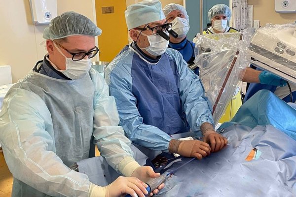 «Это жизнеугрожающее состояние, — пояснил заместитель главного врача по хирургии ФЦВМТ Виктор Цой, — Единственным выходом является протезирование аортального клапана. Традиционный способ замены — операция на открытом сердце с искусственным кровообращением. Нашему пациенту 87 лет, плюс сопутствующие заболевания. Таким больным в большинстве клиник в операции отказывают. Мы же несколько лет назад внедрили и используем миниинвазивную технологию ТAVI. Это транскатетерная имплантация, когда новый клапан через небольшой разрез в сложенном виде доставляется к сердцу по сосудам, затем устанавливается и раскрывается в необходимой позиции. Проводится операция на работающем сердце, под рентген-контролем».