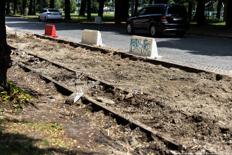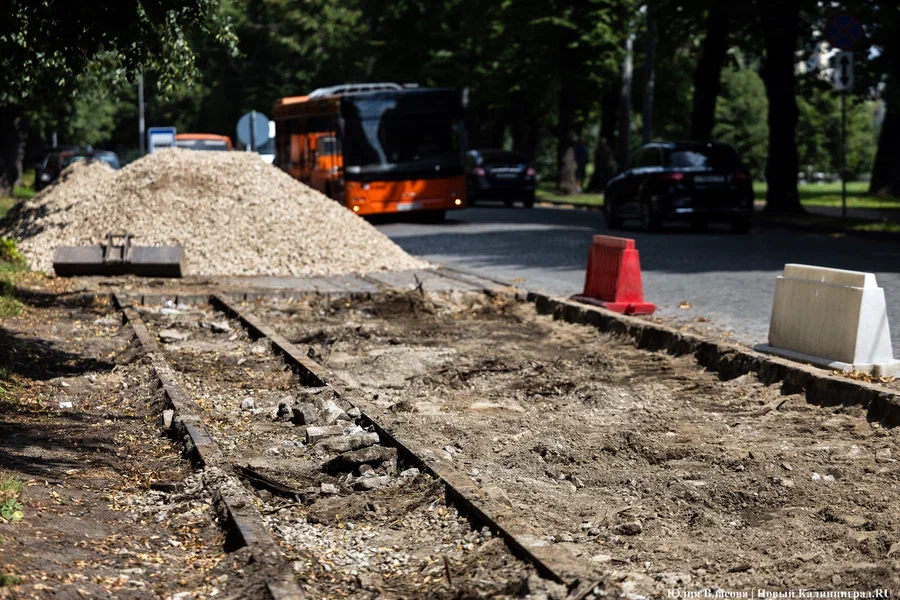Трамвайные пути при этом демонтируют не полностью. «Это делается для того, чтобы транспортные потоки равномерно распределялись по улице. Можно было оставить так, как есть, но для того, чтобы сократить хвост [из автомобилей], который образовался, <...> мы сделали этот буфер с заездом на одну линию трамвайного полотна. Вторая линия при этом остаётся. Там, при необходимости, можно организовать реверс, как и на Тельмана, и на Фестивальной аллее. В данном случае мы, сохраняя трамвайную полосу, можем использовать реверс», — сообщил Шлыков. Также он отметил, что существующее покрытие снимается, чтобы автобус мог останавливаться ближе к остановке.Ранее сообщалось, что в Калининграде на отрезке улицы Пролетарской от башни «Врангель» до перекрёстка с улицей Тельмана демонтируют трамвайные рельсы. Глава администрации Елена Дятлова также сообщала журналистам о планах ввести на этом отрезке двустороннее движение.