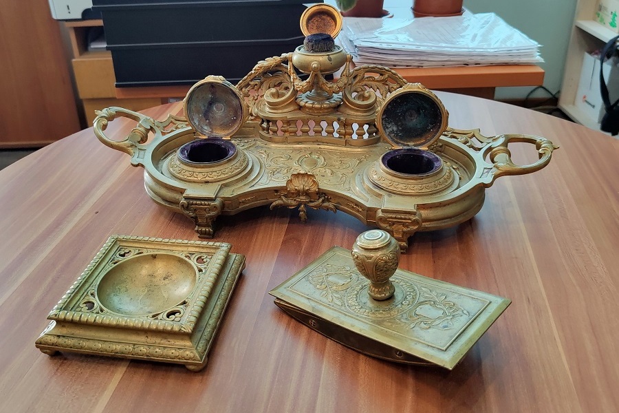 Настольный письменный прибор, также признанный культурной ценностью, в багаже россиянина обнаружили инспекторы МАПП Чернышевское. Эксперты выяснили, что он был изготовлен в Европе во второй половине XIX века из сплава меди с цинком и является антикварным изделием. В отношении владельца были возбуждены дела по фактам недекларирования и несоблюдения действующих запретов и ограничений. При этом за самим товаром хозяин в итоге не явился, и решением суда антиквариат был признан бесхозяйным и обращен в федеральную собственность.